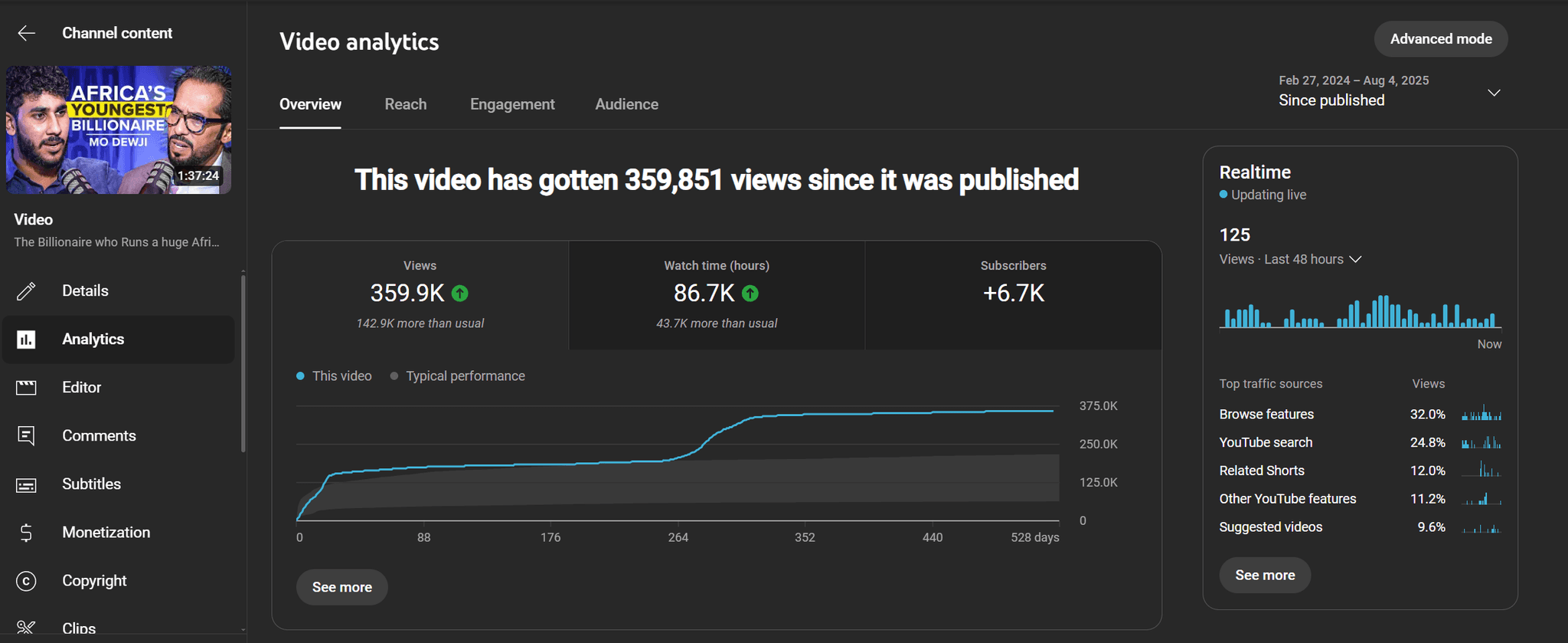 In just 4-5 videos, we delivered 6 figures in YouTube monetization for Ahmad. This included creating the 2nd most famous video on his entire channel.