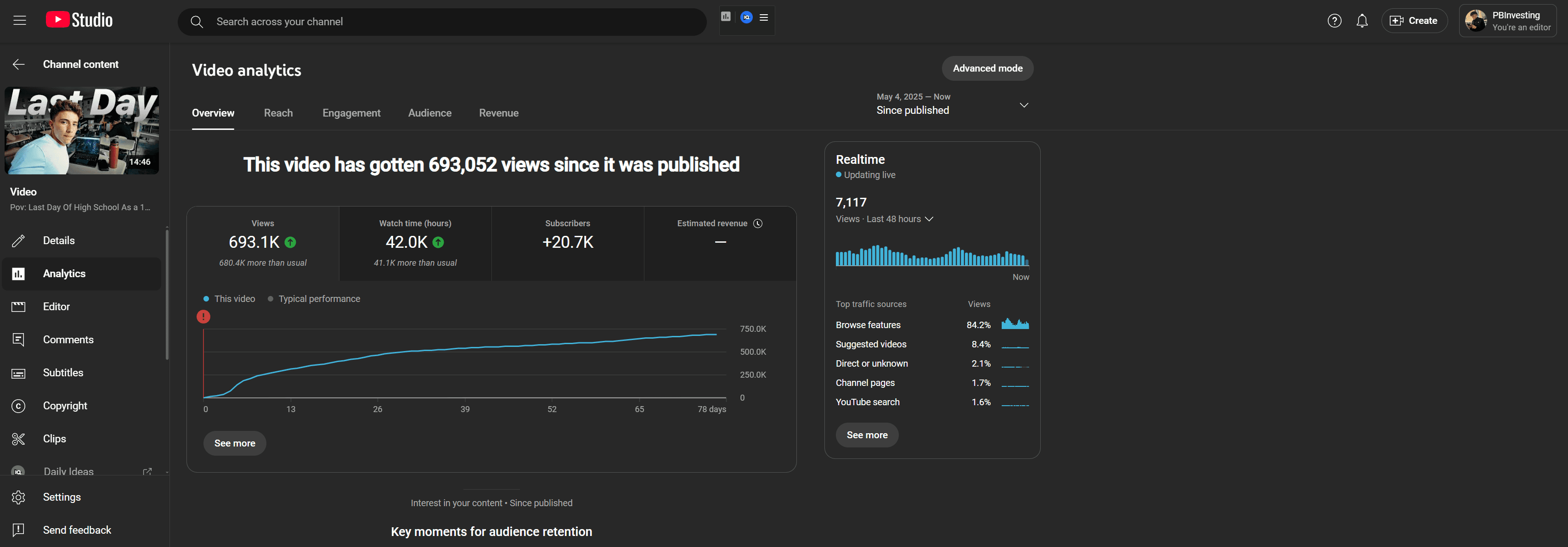 We took PB from 9K to 60K subscribers in just 4 months. His channel now generates $200K monthly and averages 400K views per month.