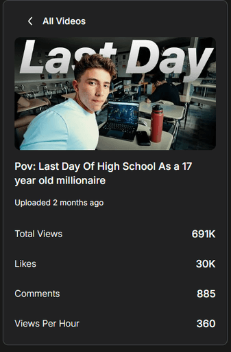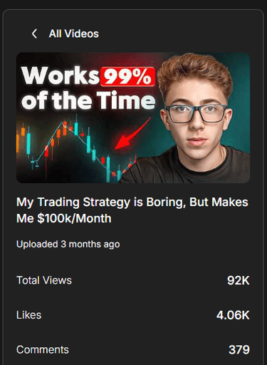 Our first two videos with Umar generated nearly 800K combined views. This drove millions in revenue to his SaaS platform Tradezella.