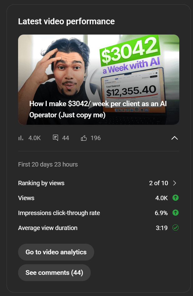 Our first video with Yousef hit 56K views in 4 weeks. This was 54K more than his usual performance.